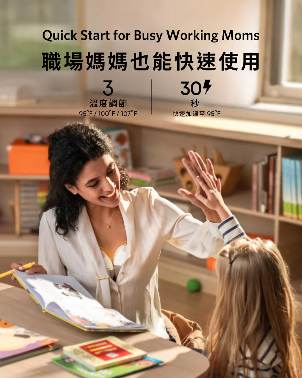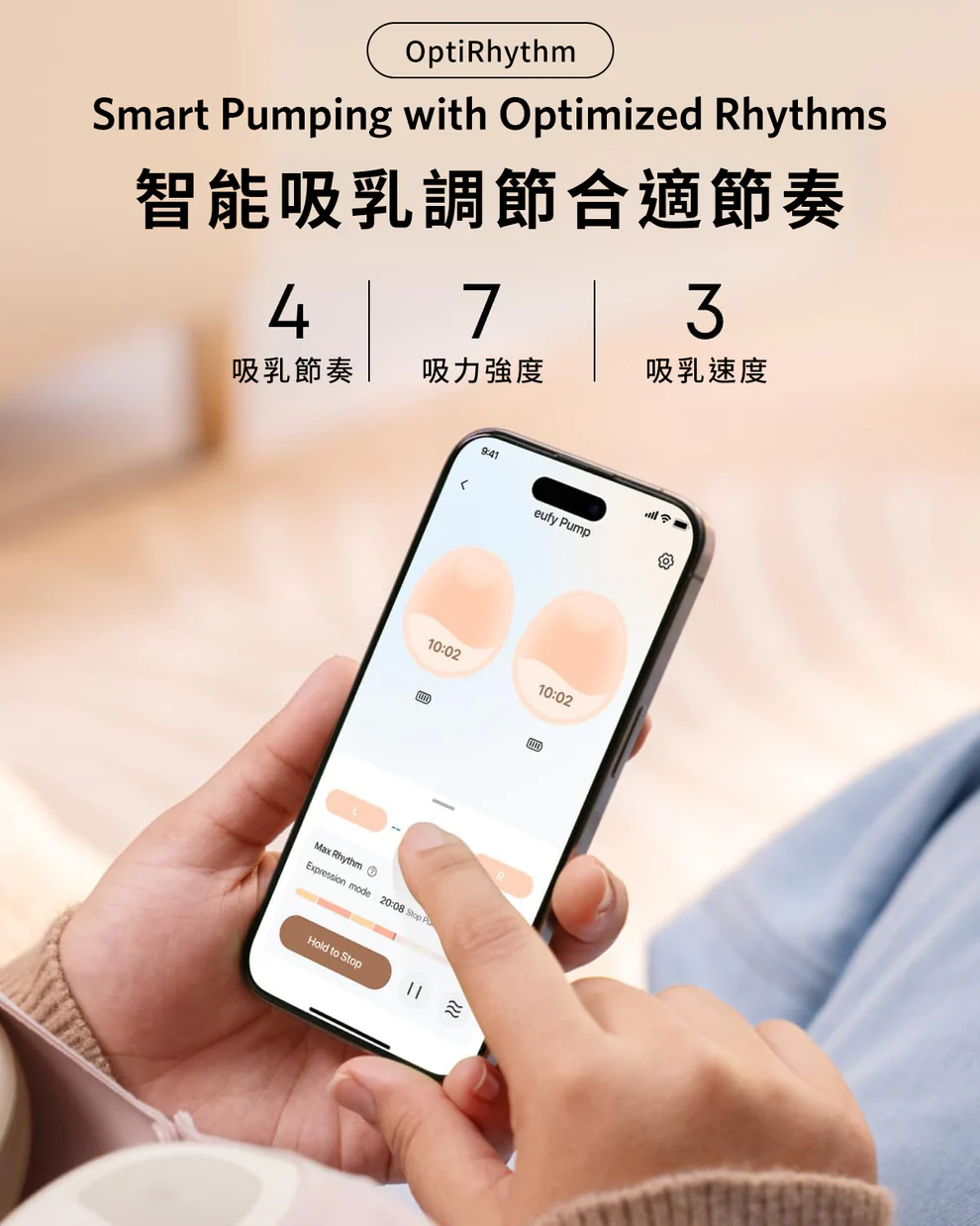 特設 HeatFlow™ 溫熱技術提升吸乳效率 HeatFlow™ 溫熱技術提供 3 個溫度調節 ( 95°F / 100°F / 107°F ), 改善母乳流動,減少阻塞並增加乳量*, 給你如同水療般溫暖舒適 。 *基於300+ eufy 吸奶器使用者實際使用後反映。根據Gardner, H., Lai, C.t., Ward, L C., et al. 於科學期刊《Nature》中發表的研究"Thermal Physiology of the Lactating Nipple influences the Removal of Human Milk"表示,乳頭溫度每提升1°C,產乳量平均增加10ml。 方便忙碌的媽媽能快速使用 HeatFlow™ 溫熱技術可在 30 秒內加熱至 95°F*, 讓忙碌的媽媽也能快速開始吸乳。 *數據基於內部實驗所得。實際表現可能會因不同使用情況而有所不同。 OptiRhythm 調節吸乳節奏 提供 4 個預設節奏模式(強力、標準、輕柔、自然模式)、7 個吸啜強度及 3 個循環速度以配合你的乳量需求, 讓你體驗解放雙手的方便舒適感。 醫療級吸力及食品級材質 提供最大 300mmHg 安全的醫療級吸力提高產乳量。105°人體工學曲面設計防漏及舒適貼乳,所有貼膚的部件均由不含BPA、食品級物料製成,配戴舒適使用安心。 細小輕巧 安靜使用 輕巧的機身使穿戴更輕鬆,配合雙重密封的防漏設計, 且運行時音量僅約 46 db, 適合戴在內衣內使用。 輕鬆清洗 僅 4 個配件,讓你清潔消毒時更輕鬆拆卸。 產品規格 加熱溫度: 3檔調節 - 35°C, 38°C, 42°C (95℉, 100℉, 107℉) OptiRhythm: 4個預設節奏 吸啜強度: 300 mmHg 醫療級吸力, 7 個強度, 3 速度 音量: 46dB 容量: 150ml (5 oz.) 集乳瓶 使用時間: 2.5小時 (最多6次) 再充電時間: 約 1.7 小時 (5V/1A) 內附: 吸乳器連24mm矽膠喇叭罩 x 2, 17/19/21mm 尺寸塞, 鴨嘴閥門 ×2, 乳頭尺寸量度卡, USB-C 充電線 ×2